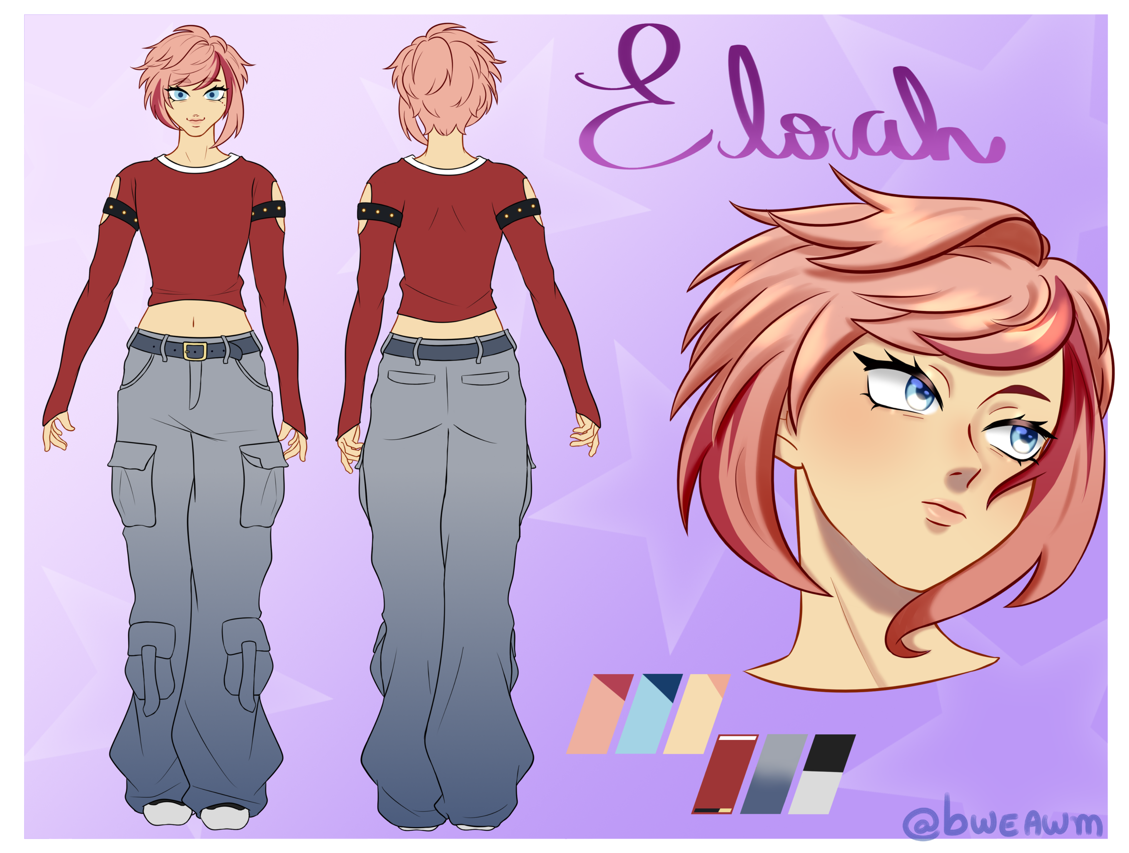 Uma folha de referência de seu personagem incluindo:˚ 1 corpo inteiro (frente e costas ou somente frente) com cor base;